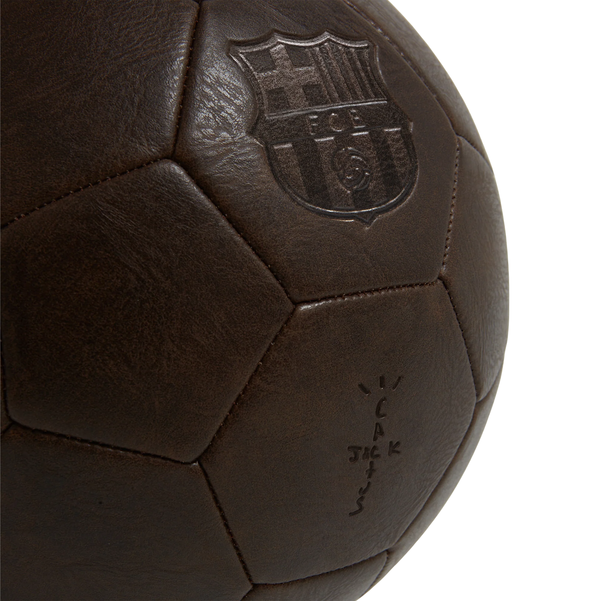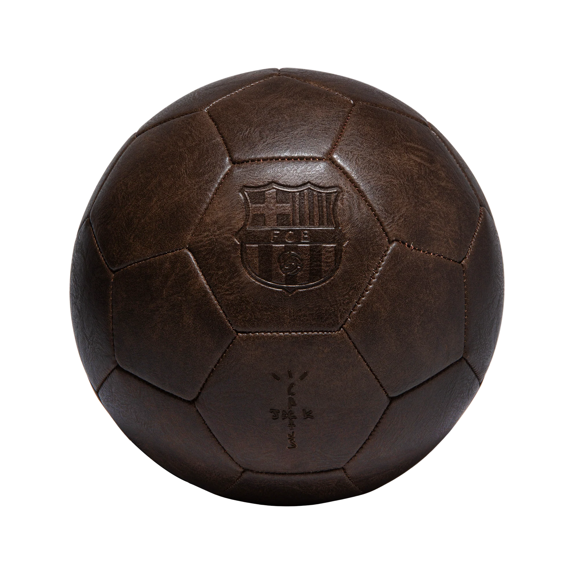 VINTAGE-STYLE FULL SIZE SOCCER BALL • DEBOSSED FCB CREST AND CACTUS JACK LOGOS ON 2 PANELS• SHIPS IN 10-12 WEEKS